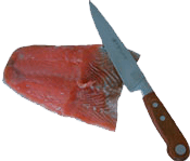 The key is to start with very fresh fish and to clear it of all bones. I took a 2 pound piece of salmon, sliced it in half and took out the bones.